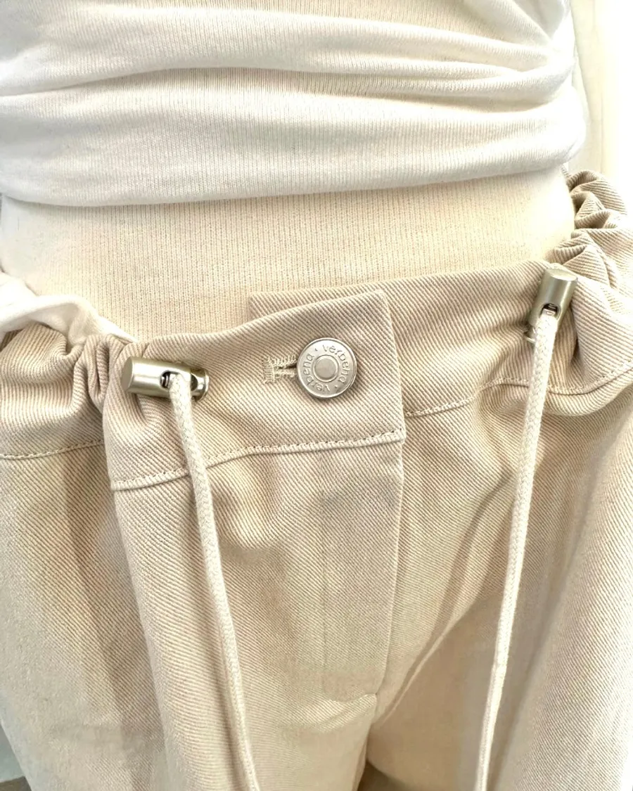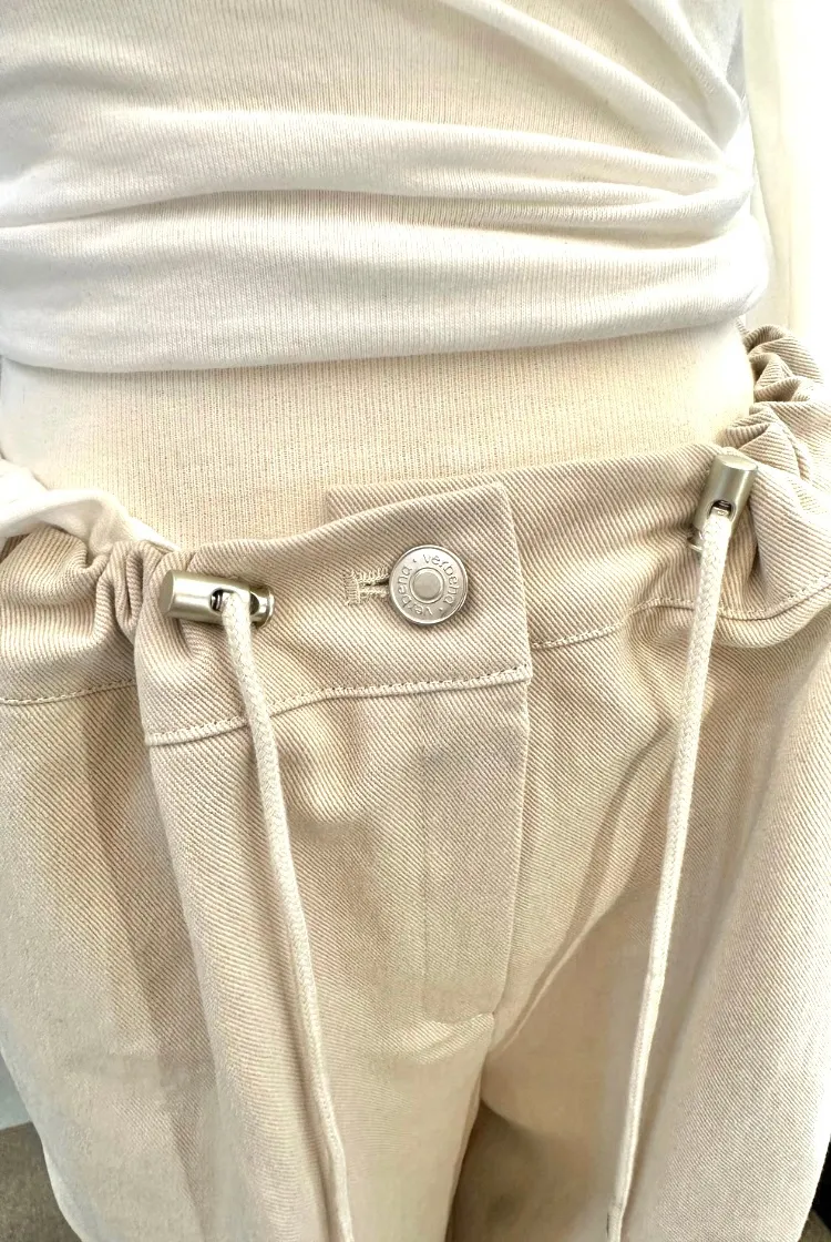 米色抽繩工裝寬褲